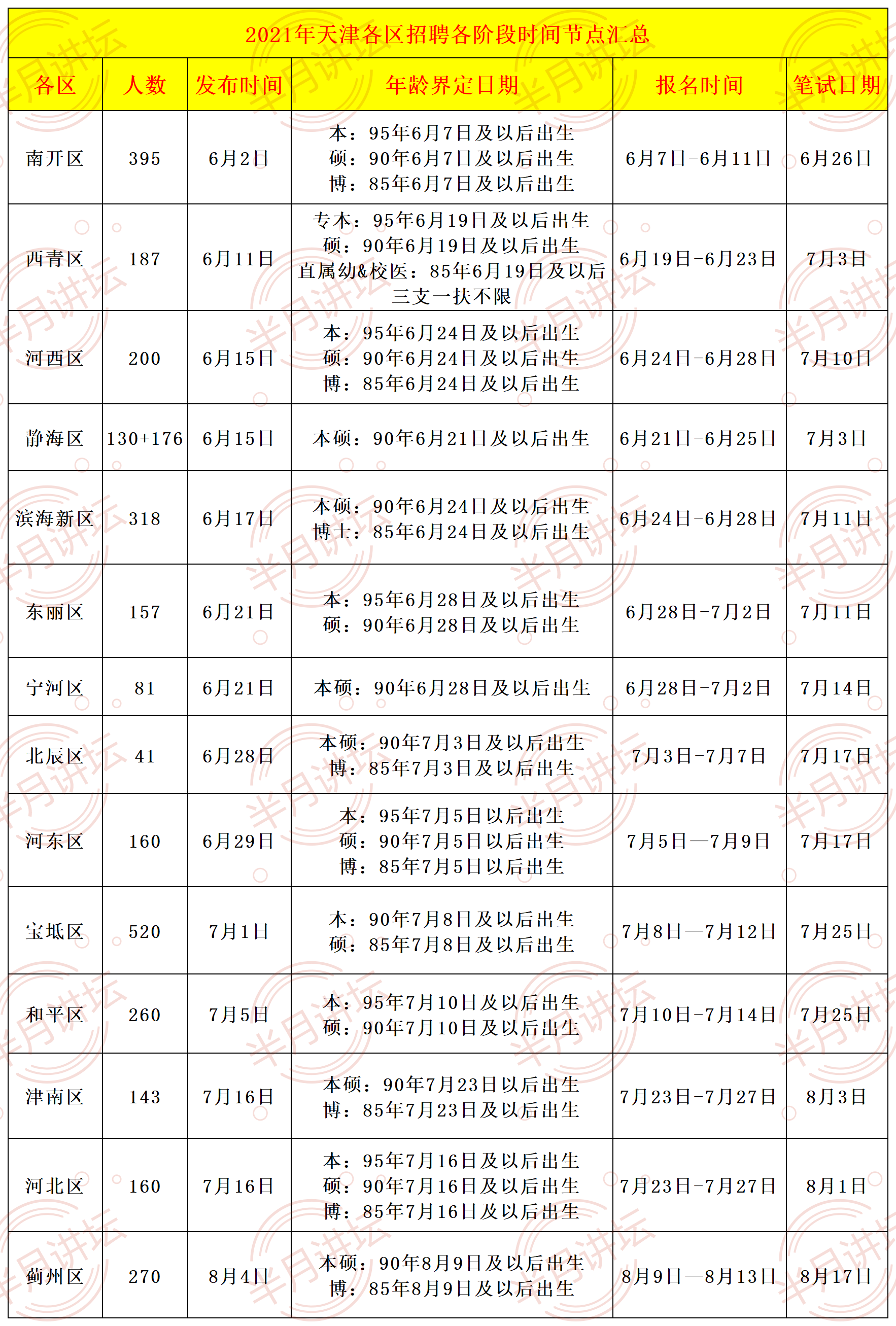 今天小编总结了2023年天津主要区的年龄界定要求,供大家参考。