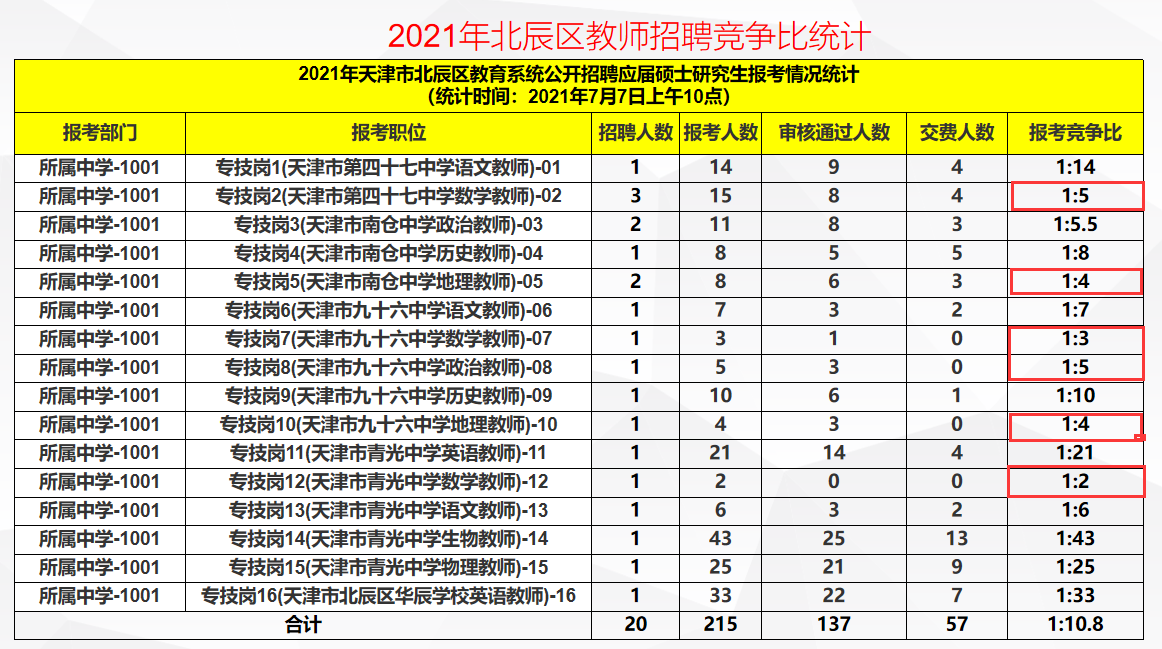 2023年30岁以下可报!2021年北辰区教师再招29人!往年各岗位竞争比分析