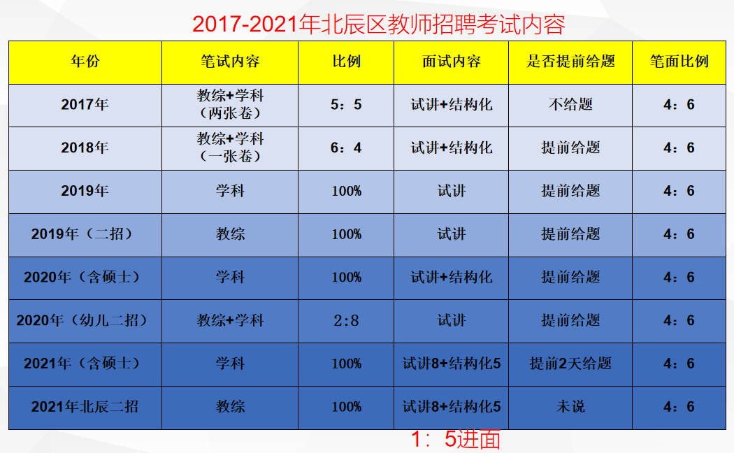 北辰区教招面试,近几年一直是提前给题,并且面试占比较多,值得注意的是,本次招聘进面比不同于往年,是1:5的进面比例。