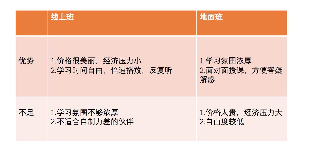 小伙伴们在面临众多培训班的选择上,往往会比较纠结。这时候可以试听一些公开课或者是直播课,还有就是多听听一些线上的课程,线上课程比较好的一点就是我们可以二倍速的去听,这样又可以节省很多的时间。另外如果对一些已经掌握的方法和技巧。我们也我也可以拉动进度条,可以按照自己的节奏来调整课程的进程,这样一来备考也会轻松很多。