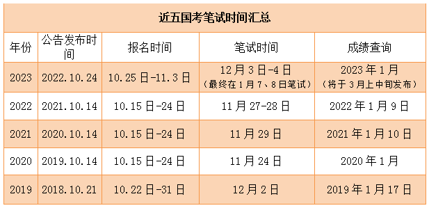 从往年国考时间安排来看,预计2024年国考笔试时间为2023年11月27日,招录公告或将于10月中旬发布。