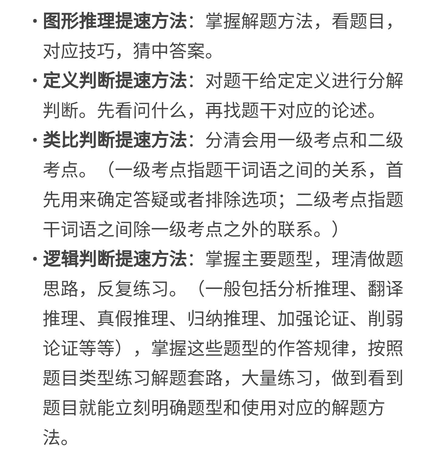 言语理解提速方法:不要过于纠结,审题三步走,先看题目,再看选项,最后看材料。如果实在不知道如何选择,就相信自己的第一感觉,千万不要轻易的改答案。