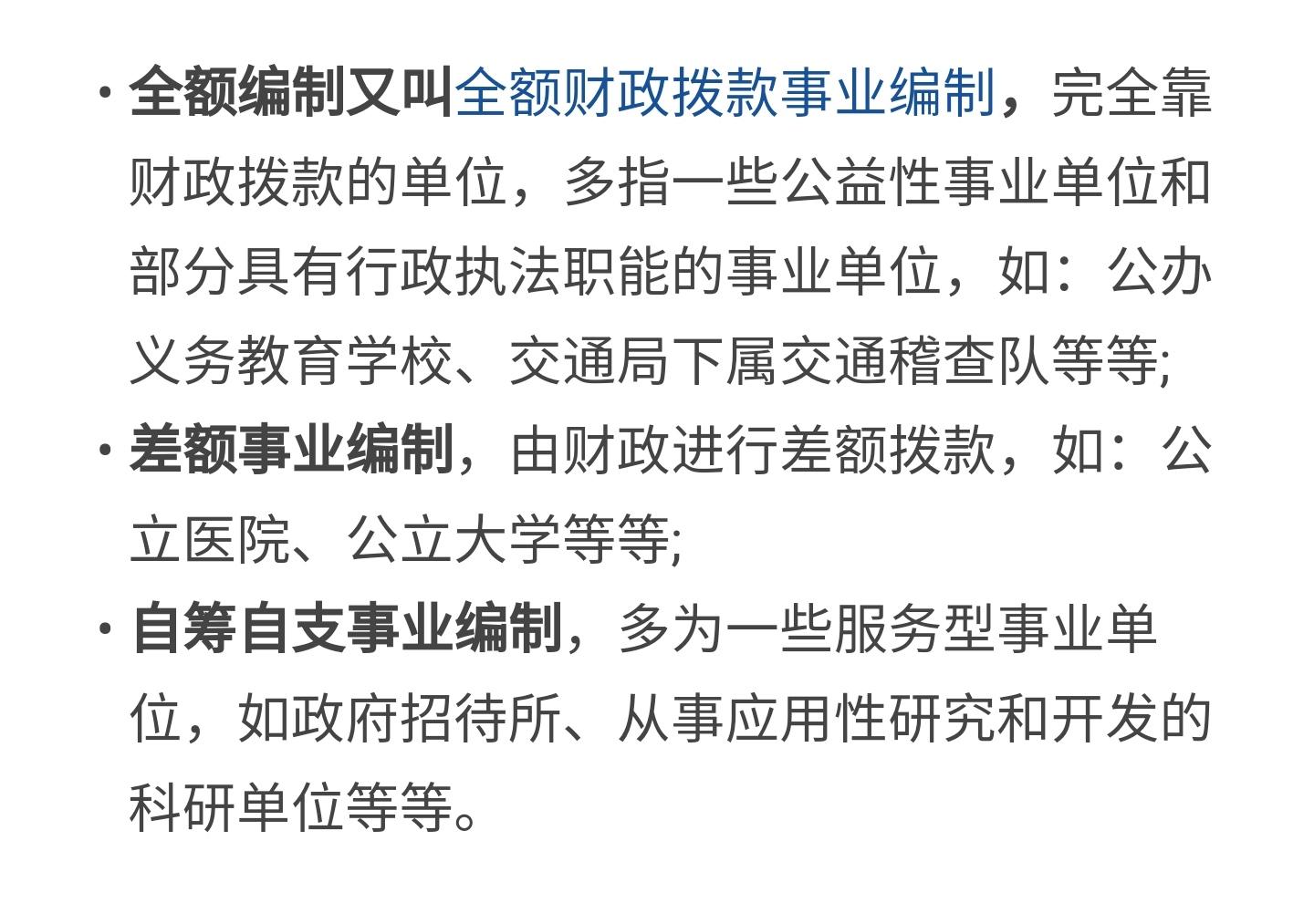 事业单位编制大多是服务性质的单位,一般分为三种:全额事业编制、差额事业编制和自筹自支事业编制三种。
