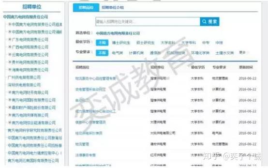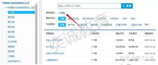 2)图左是南方电网的各直属公司,打开左边的+号可以看到各直属公司的分公司招聘情况。
