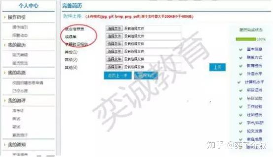 注:1)上传时尽量将成绩单(教务处盖章)、就业推荐表(学院盖章)、学籍验证报告、计算机二级、英语四级等所获证书、奖励的扫描件都上传,确保信息的完整性。