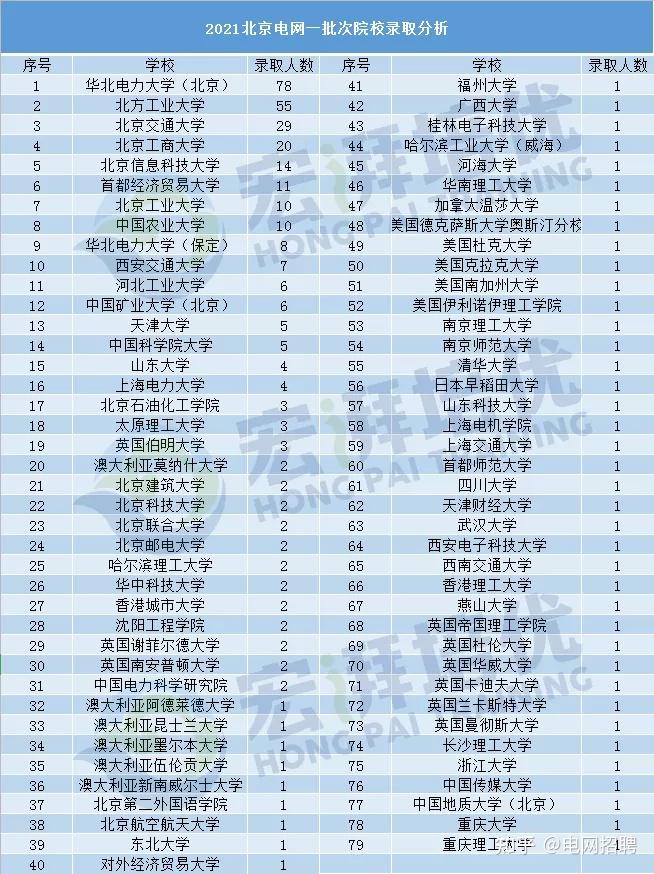 北京电网二批次招聘需求明显减少,2021二批次总计需求50人。招聘要求方面基本和一批次一致。