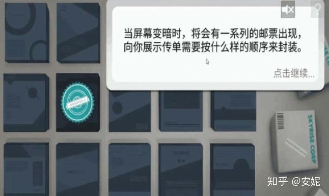 当屏幕变暗时,将会有有一系列的邮票出现,向你展示传单需要按什么样的顺序来封装。当屏幕亮起来时,按正确的顺序点击传单来重复序列。(但会有新的邮票乱入,你要做到无视新的邮票。)