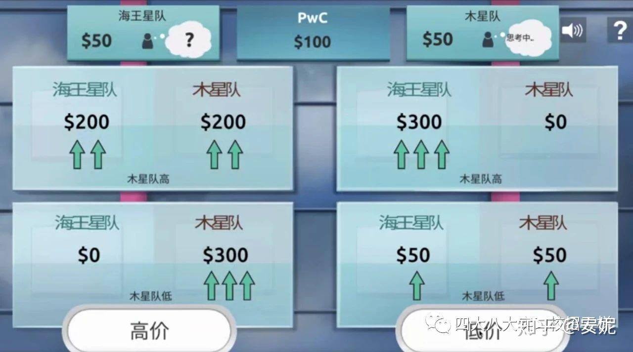两支团队在市面上推出了一款新的平板电脑,你可以选择定高价或低价,两个团队:同定高价各200;都定低价各50;在对手定高价(买不出去0)时定低价赚300。