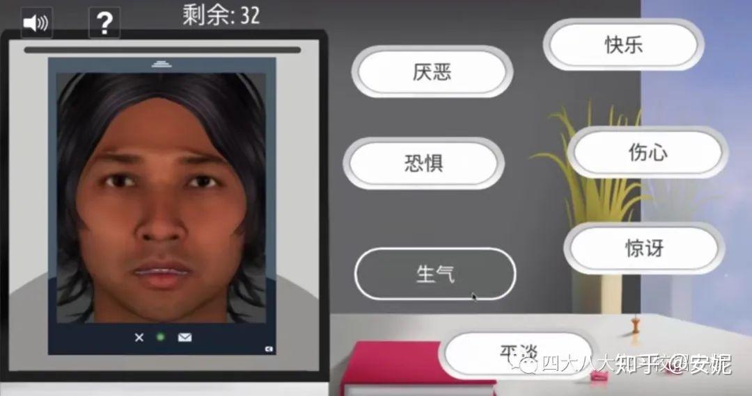 识别出现在此处的每张脸所表达的情绪。点击相应的按钮来记录他们的反应。可供选择的情绪将会随着每张脸而变化。