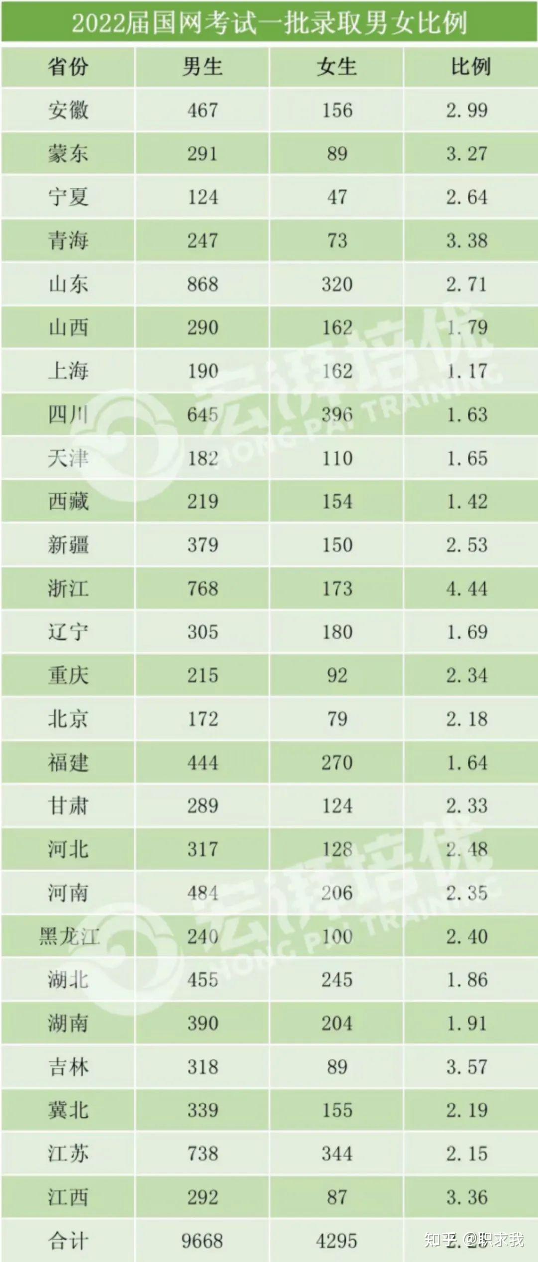 总体来看,总录取人数中,男生是明显多于女生的,但是比例还是比较均衡,上海甚至还出现女生录取数多于男生的情况。由此可以看出,国网并不是不愿意招收女生,只要你专业、要求符合,完全不用担心性别问题!