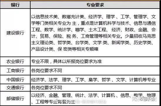 当然,就近几年来各大银行招聘情况而言,银行趋于重能力胜于重专业,尤其是在春季招聘中,更是很少要求。在此提醒大家,不管学得是什么专业,综合素质高才是最重要的,考生均可投递网申简历试一试!