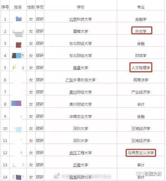 这也是去年邮储银行的签约名单,其中外交学、人文地理学、马克思主义法学等的专业也榜上有名。