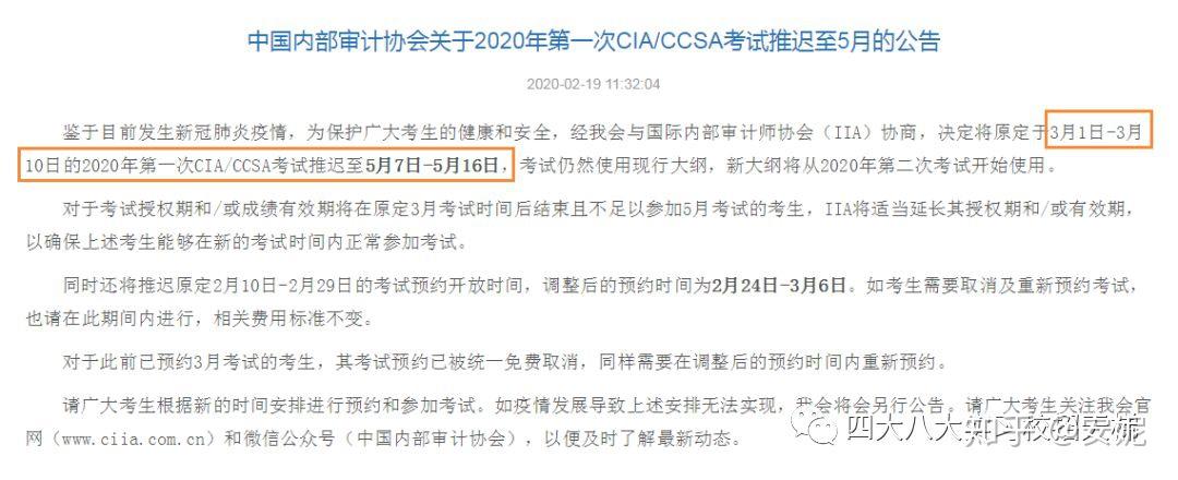 4、CIA/CCSA考试推迟至5月7日-5月16日