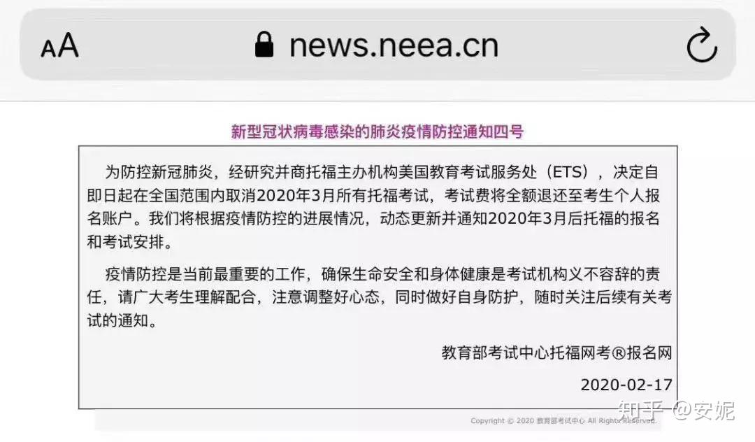 教育部考试中心及托福官方纷纷发布通知,取消中国大陆三月份所有托福考试。