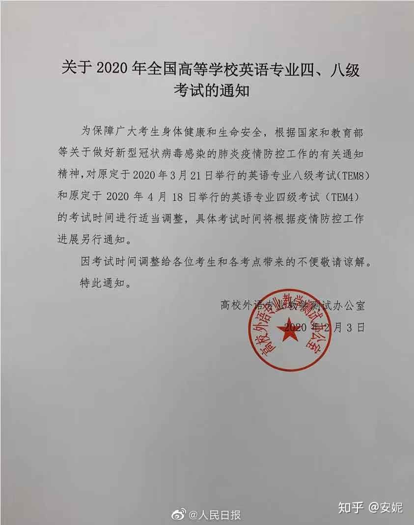 英语专业八级和原定于2020年4月18日举行的英语专业四级考试的考试时间将进行适当调整,具体考试时间另行通知。