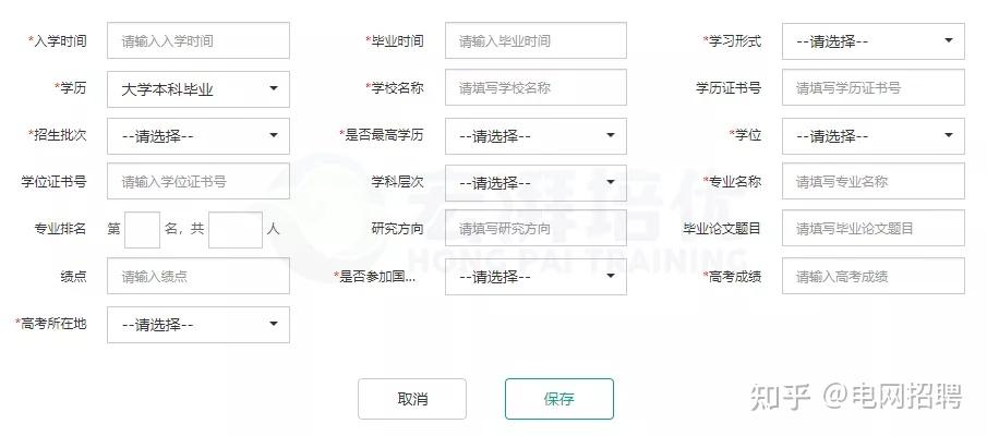 *学历选择“博士、硕士、硕士研究生毕业”则必须填写一条本科或专科记录;