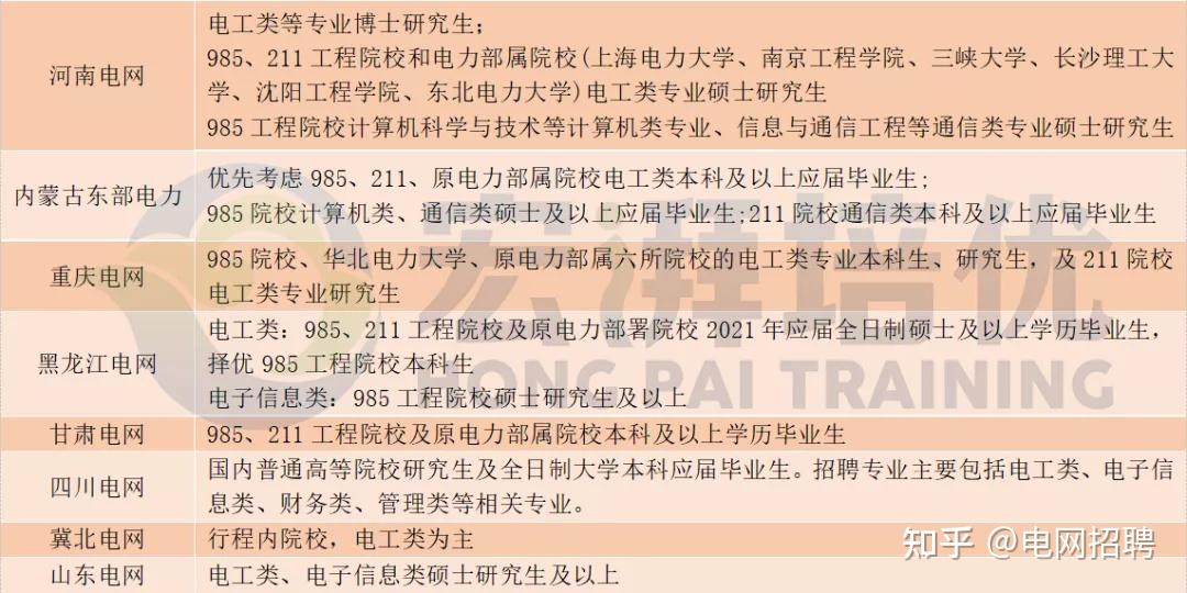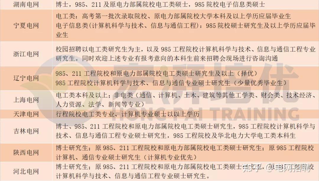 国网提前批主要针对985、211、电力院校电工类研究生,部分省份对985计算机、通信研究生也有招聘需求。各个省份具体招聘要求,宏湃小编根据往年情况已给大家汇总好:
