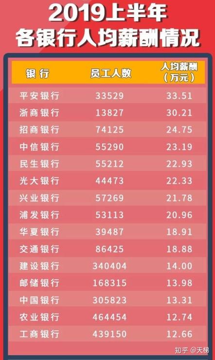 19上半年各大银行平均工资水平