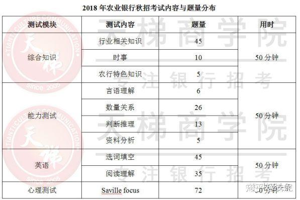 交行的考试在2018年秋招无论是从时间上还是题量上变化都比较大。从16、17年的笔试来说看交行的总题量都为192道,考试时间为140分钟,另外再附上心理测试60道,30分钟的时间。但2018年考试时间大大缩减,笔试时间为90分钟加上30分钟的心理测试,共计120分钟,笔试的题量也减少到100题。