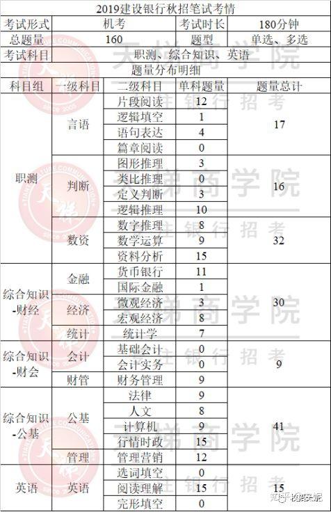 建行是自主命题,在2017秋招改革以后,考情基本稳定。网传建行最难,考察多选题也最多。此外,综合知识占比大,考查学科也最多。