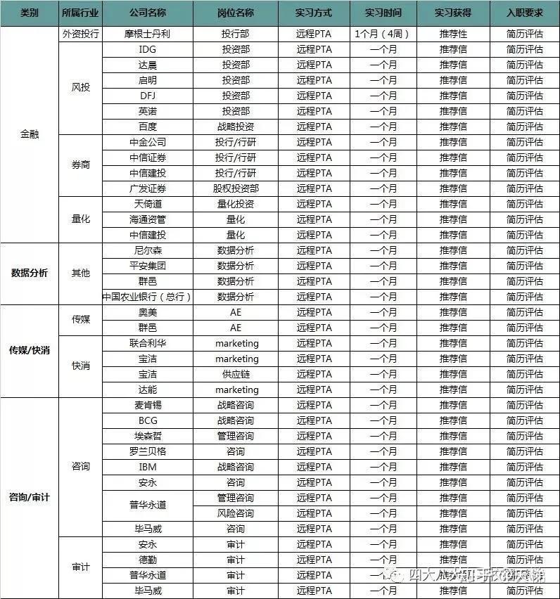 比如下方的各个行业巨头的线上实习项目: