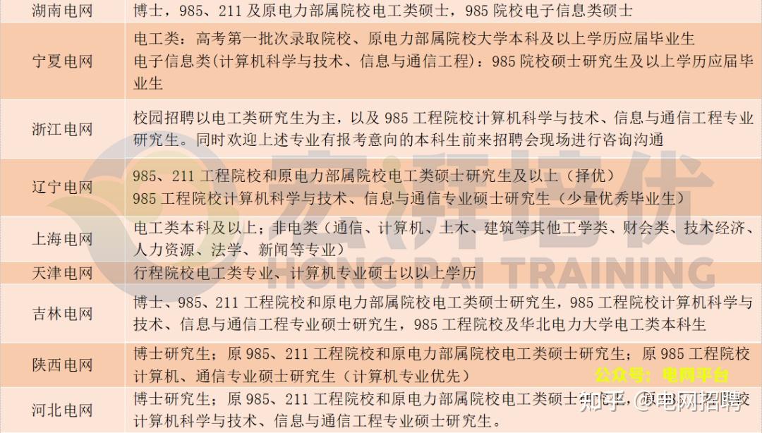 1、985、211、电力院校考生优先录用。众所周知,基本各省份针对这3类院校都是有提前批录取的,主要是针对电工类研究生,985院校通信计算机研究生。提前批次招聘时间主要集中在9月下旬到10月中旬,只要被录用,基本后期都不用参加考试了。去年各省份招聘对象汇总,给大家参考下: