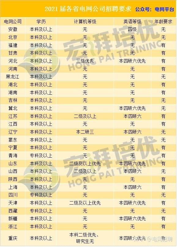 4、报考生源地优先。其实这一项很多省份公告没有明确写出这一项,但是确实是各个省份电网公司非常看重的。从我对电网招聘的了解,上海电网、安徽电网、北京电网等都是比较照顾本地学生,北京电网的招聘公告上就有明确写:应聘城区、朝阳、海淀供电公司的电工类专业本科生,学科排名靠前院校的北京生源优先。其实这个也是很好理解的,毕竟报考非生源地,人资也要考量你后期工作的稳定性。