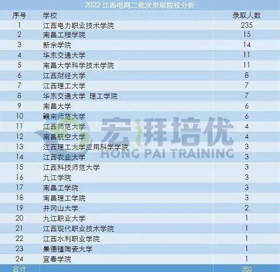 我们再来看看2023年江西国网二批录取人数,其中录取人数最多的是江西电力职业技术学院,共计235人,占到了绝大多数名额。