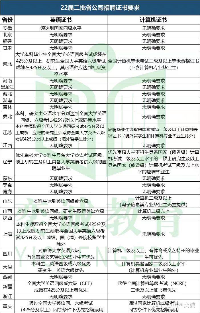 以上是22届各省公司对证书要求汇总,可作为参考!
