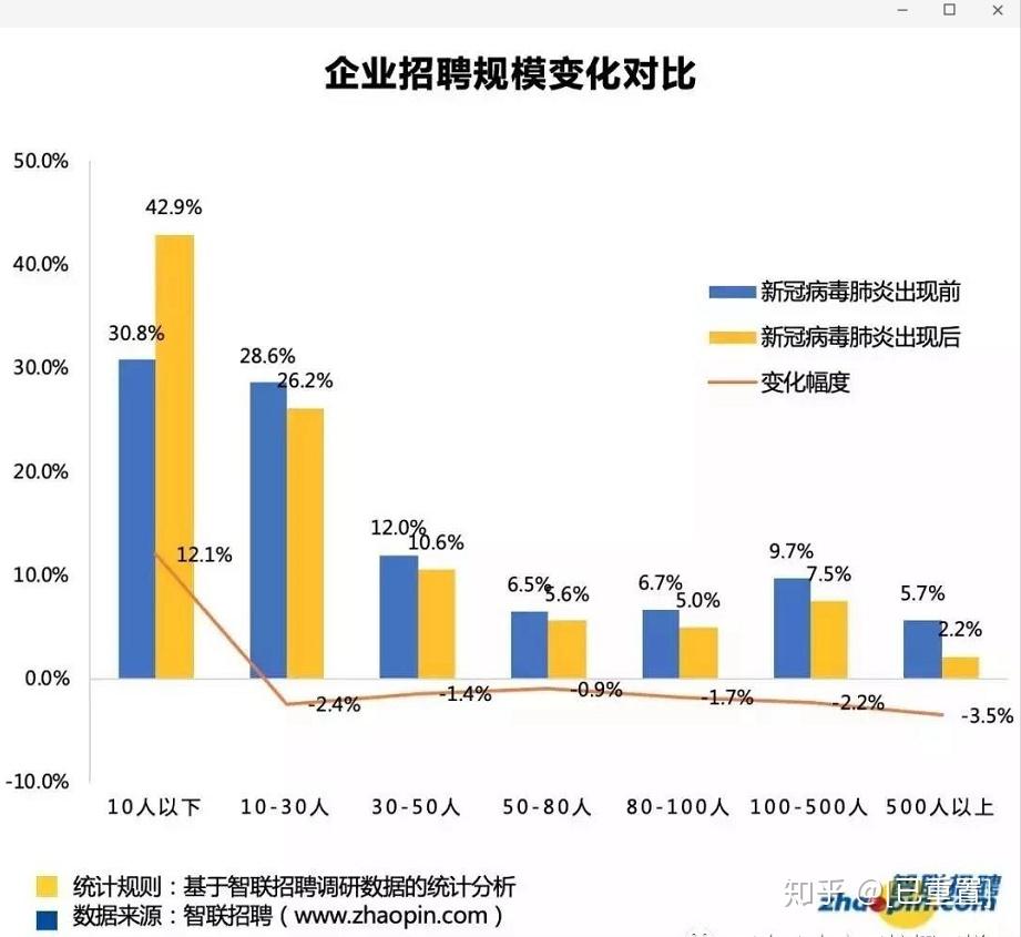 企业资金及效益 下降,最明显的变化就是在裁员和招聘这件事情上,裁员越发积极,而招聘则越发缓慢,甚至停招。智联招聘做出了疫情前后企业招聘变化对比,可以看出,疫情后企业招聘明显处于半停滞状态。