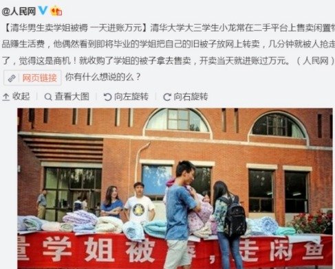 新闻上铺天盖地,清华男生卖毕业学姐被褥一天进账万元!!