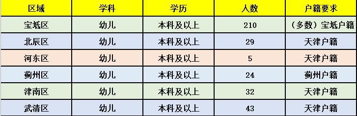 北辰区:学士及以上学位,小学教师资格证、初级中学教师资格证、高级中学教师资格证中任意一类,大学专科、本科阶段为全日制普通高等院校毕业。