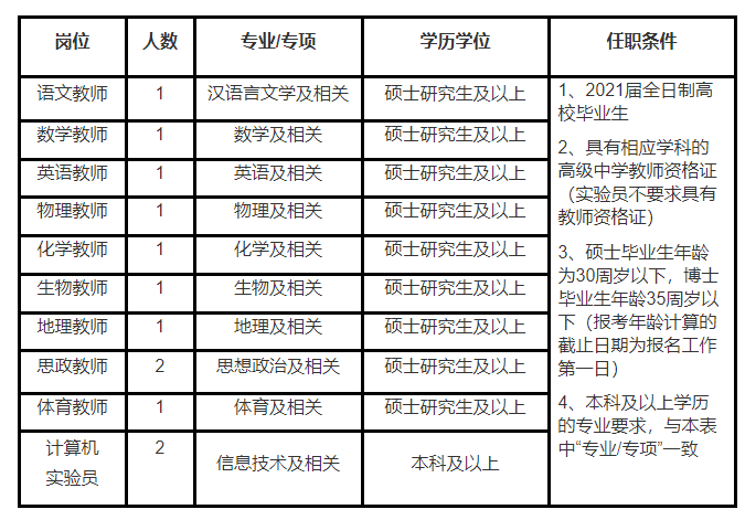 北师大生态城学校招聘教师62人,包括 小、初、高 共12个学科。