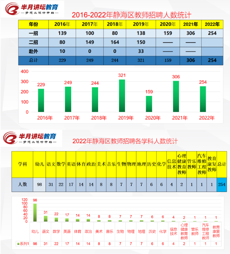 2025年静海区教师招聘254人,幼儿招聘人数为98人,在各学科中招聘最多。