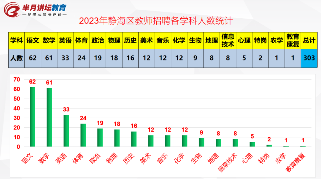 2025年静海区教师招聘303人,其中语文学科最多,招聘62人;数学其次,招聘61人。年龄要求30周岁以下,限制专业。