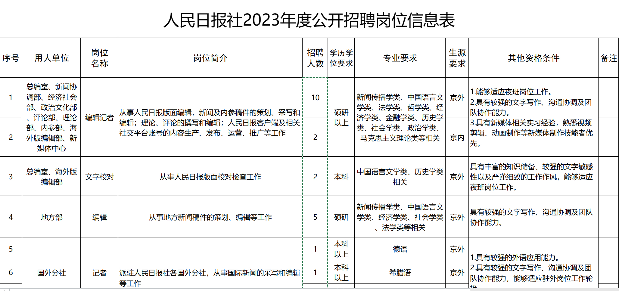 报名应聘采取网上报名方式进行,报名网站:人民日报社公开招聘网站;