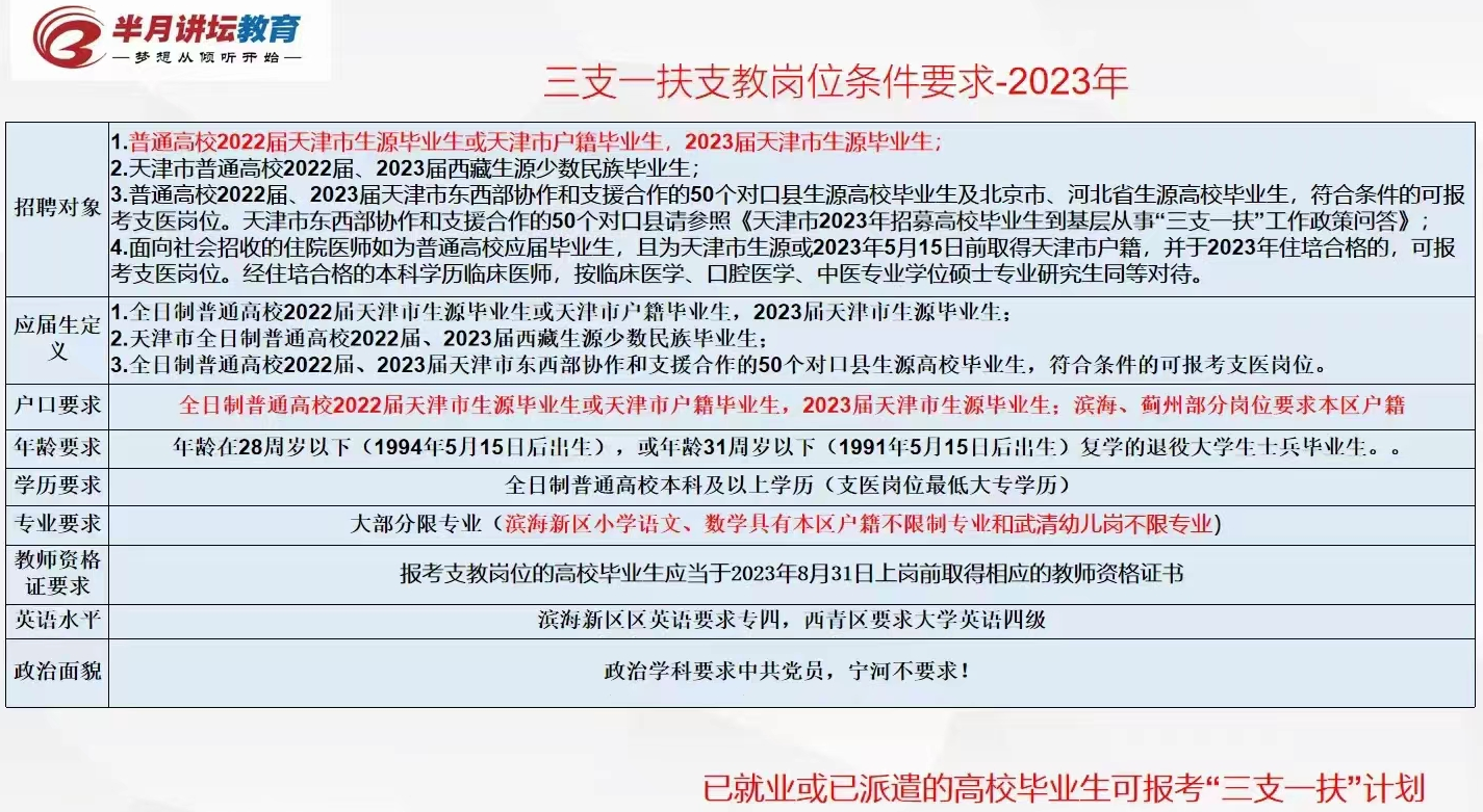 天津市“三支一扶”考试!真是考编人的入编捷径!但不是谁都能报考的,一般会要求天津生源,也就是在天津参加高考的学生,并且要求应届!