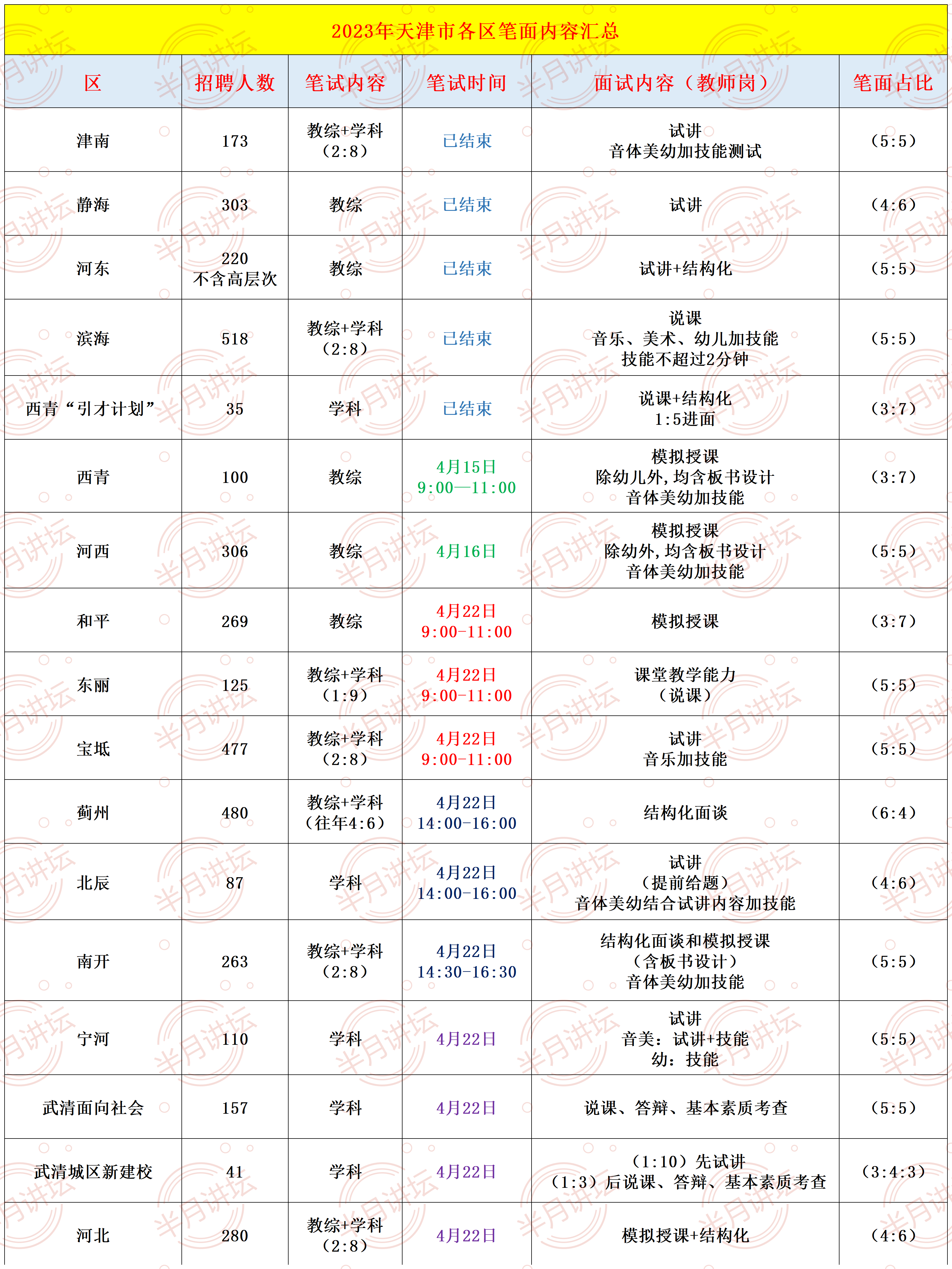2025年2025年天津市教师招聘各区笔面占比汇总!12个区包含教综!