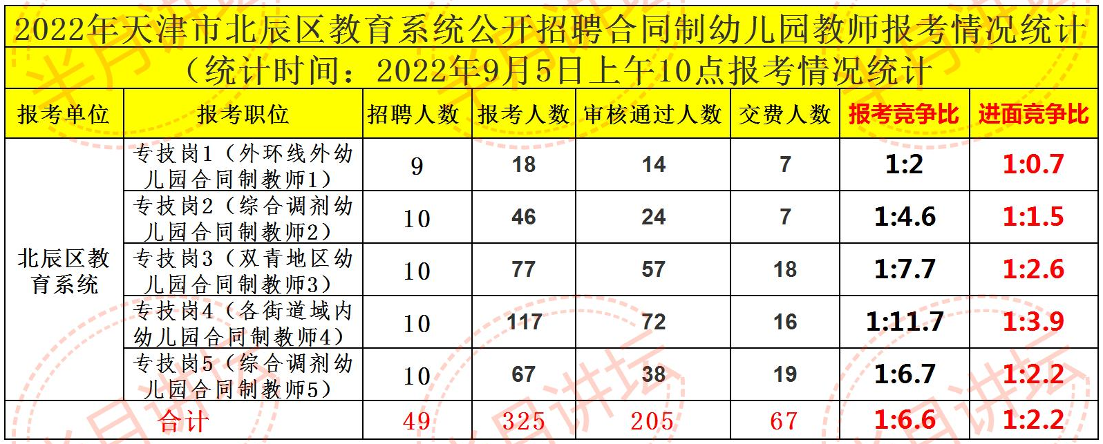 2025年天津市北辰区教育系统公开招聘合同制幼儿园教师报考情况统计(统计时间:2025年9月5日上午10点)