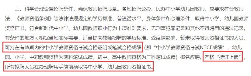 通知中明确指出:可以凭教师资格证笔试合格成绩参加教师招聘考试,但是在你正式上岗之前,需要取得教师资格证书。
