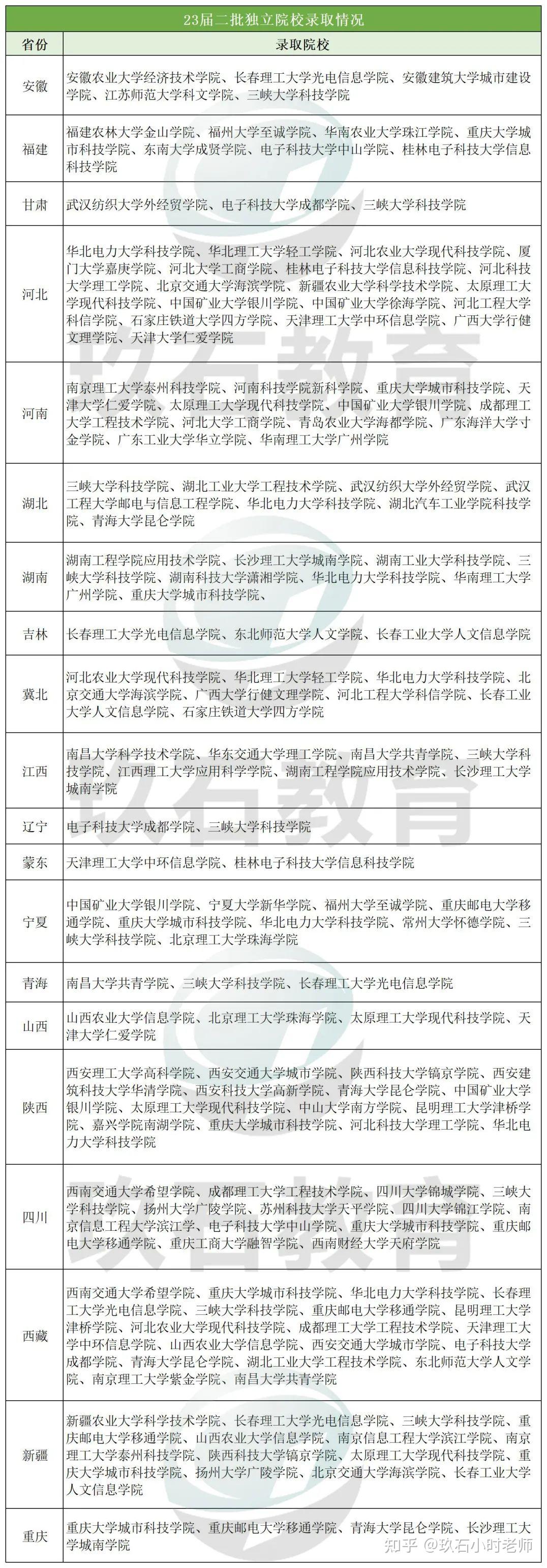 和一批招聘相比,23届国家电网二批对于独立院校要求的省份增加至20家,大部分以省内院校为主。以下是23届二批独立院校录取情况。