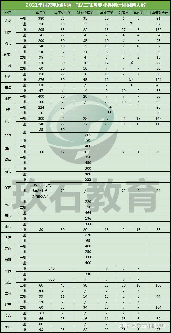 玖石君统计了21/22届国家电网各公司一批和二批的专业招收人数供大家参考。